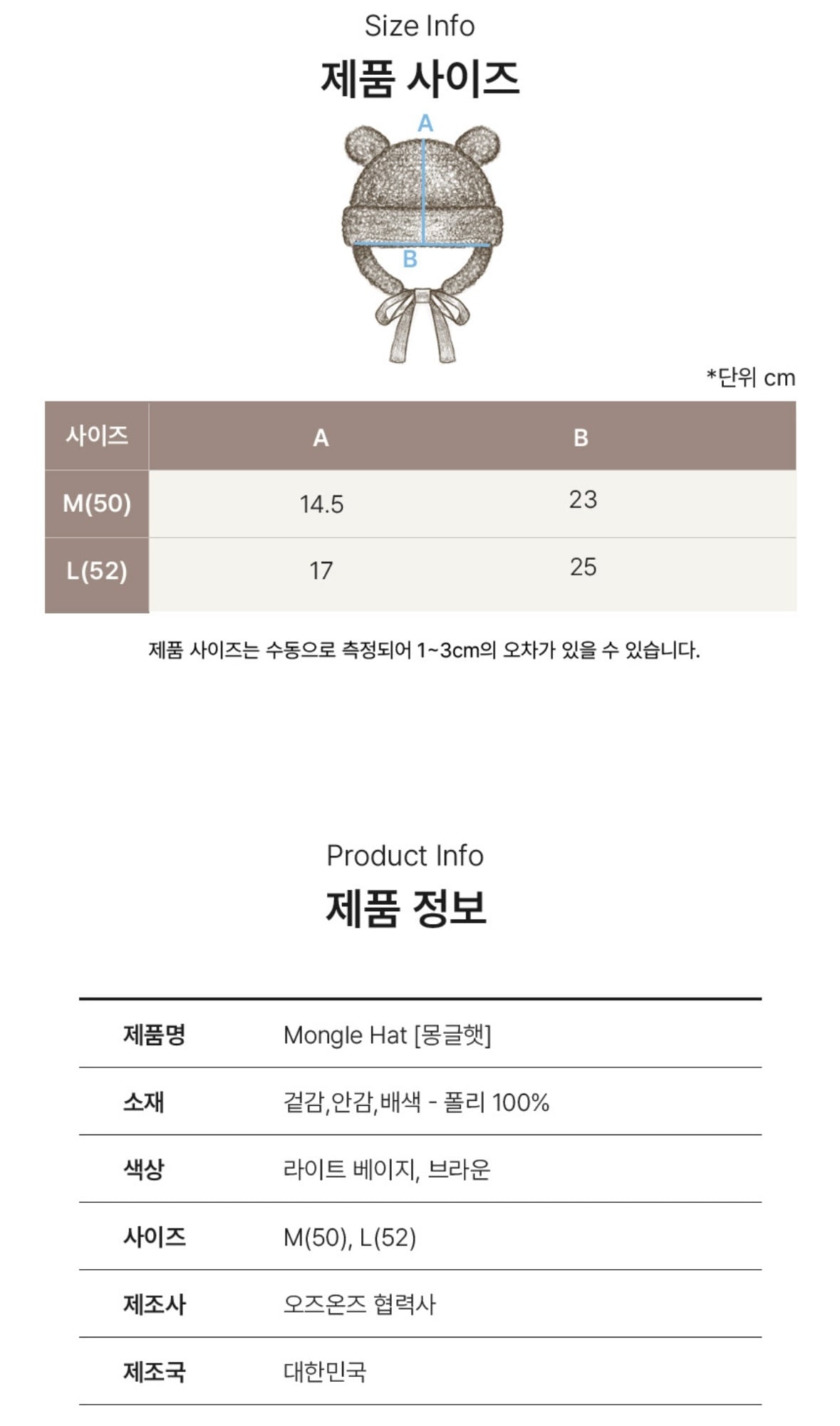 Monlge hatのサイズについて