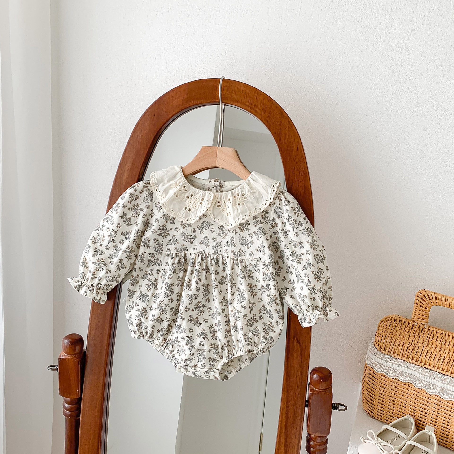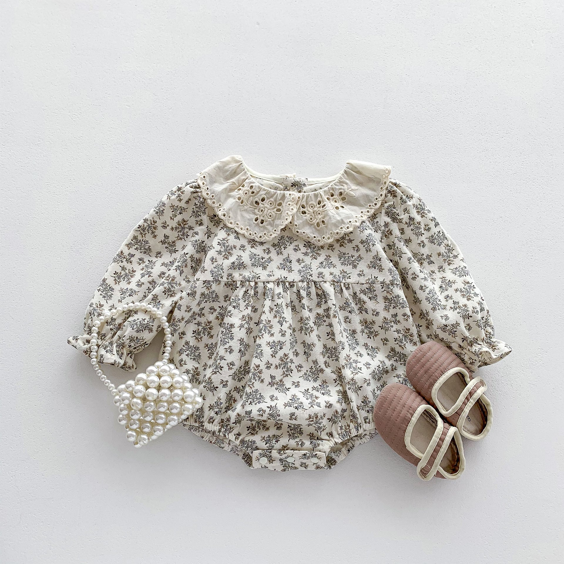 【即納】antique flower rompers