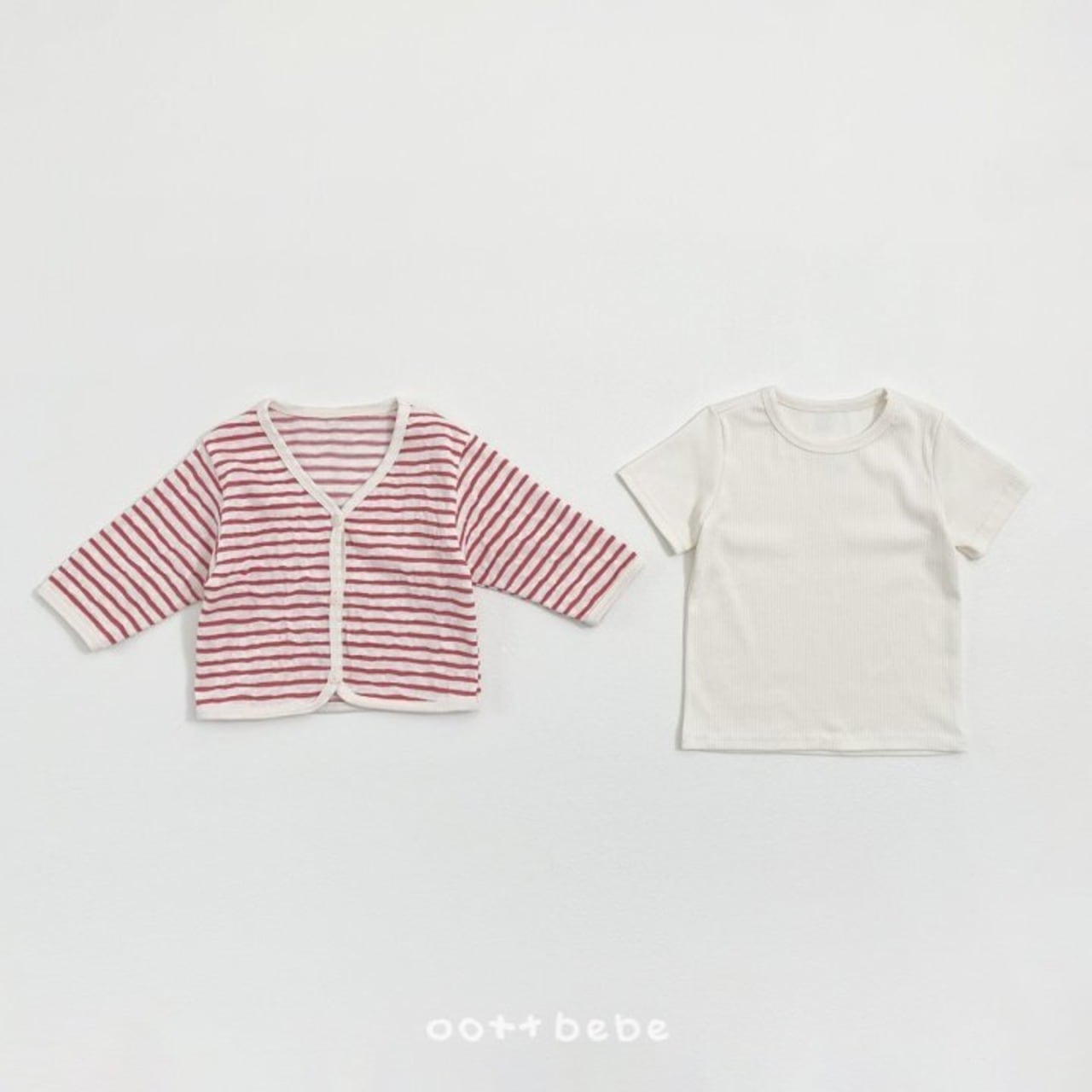oottbebe (kids) Pale striped cardigan set (T-shirt + cardigan)