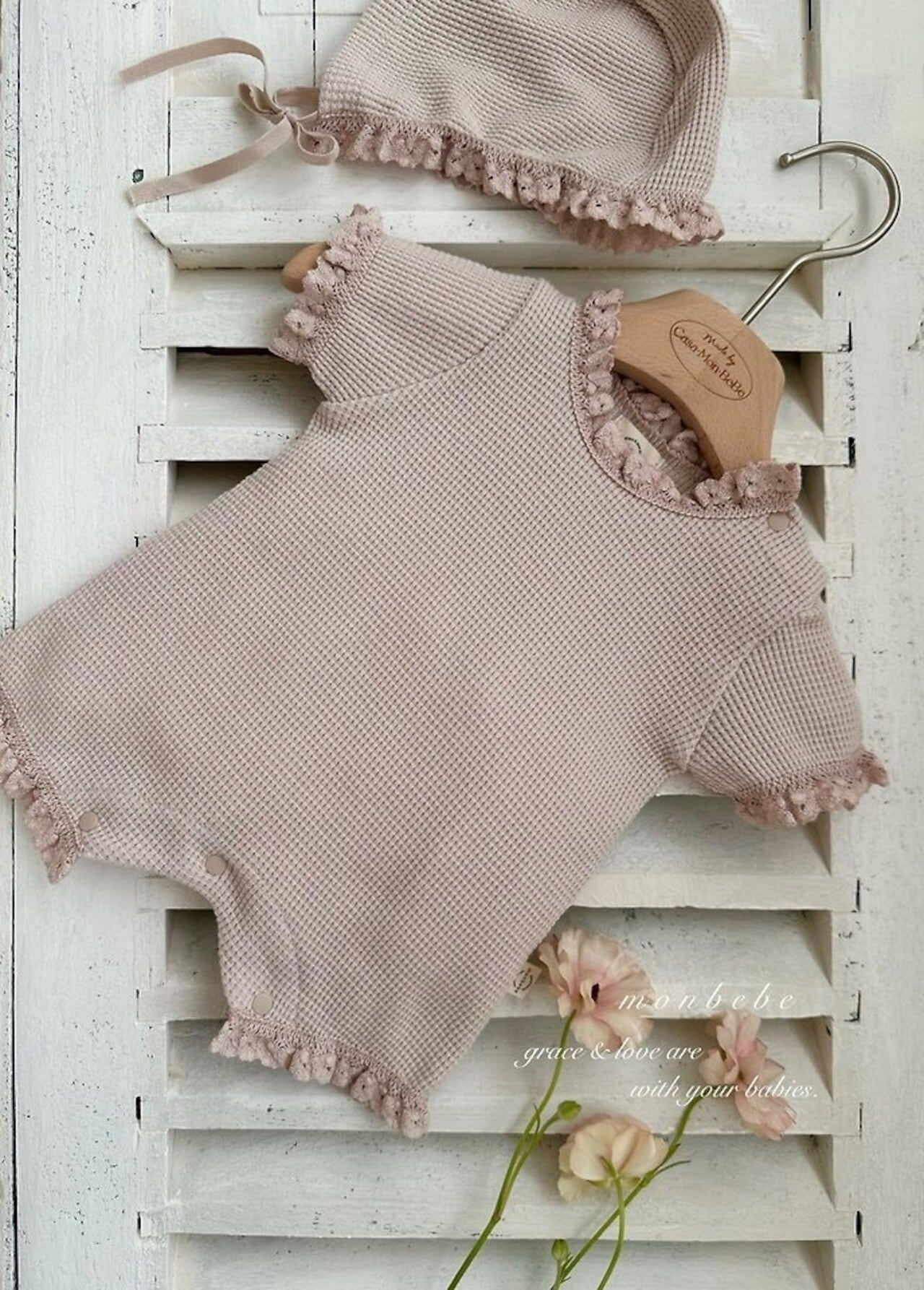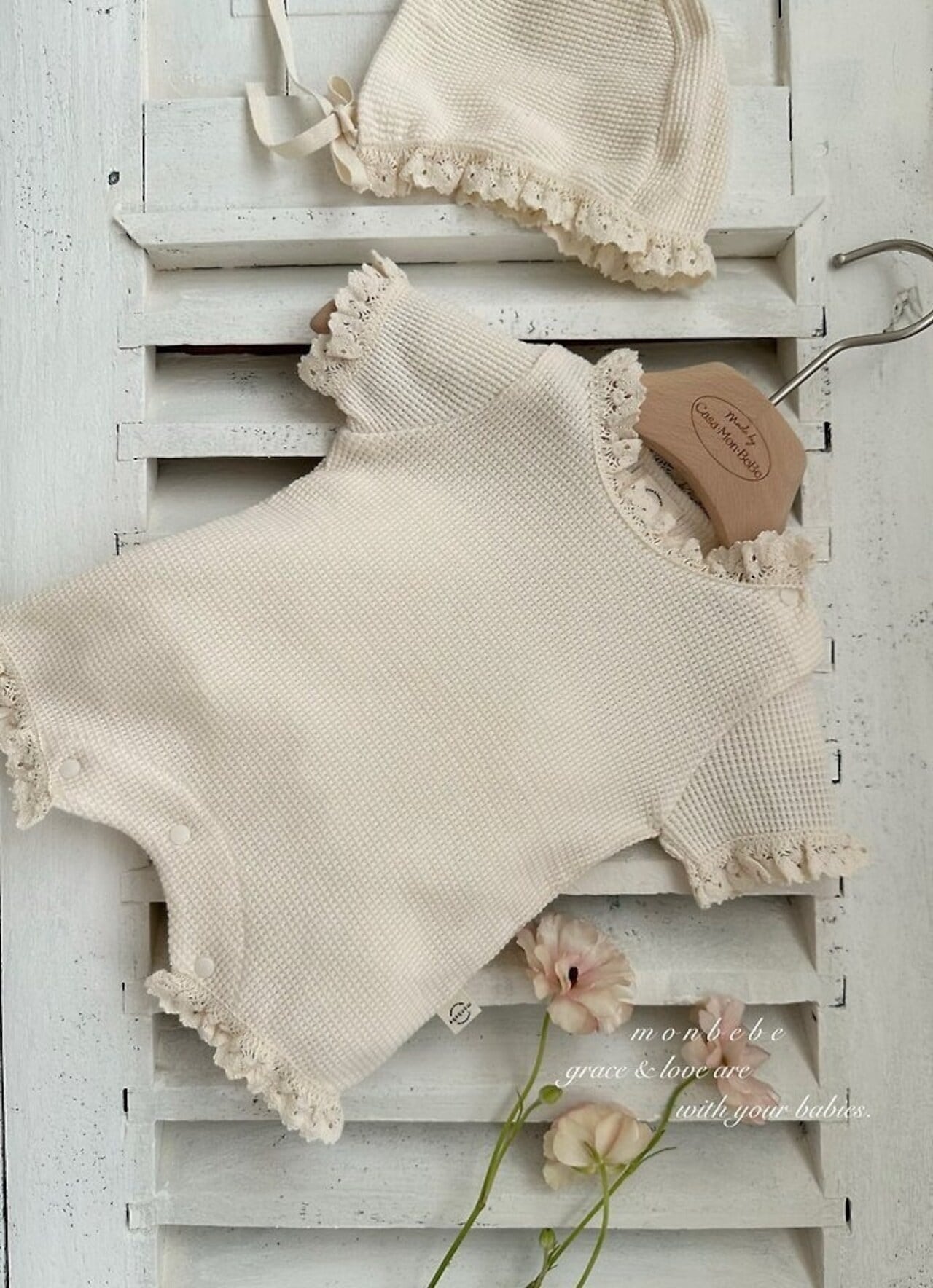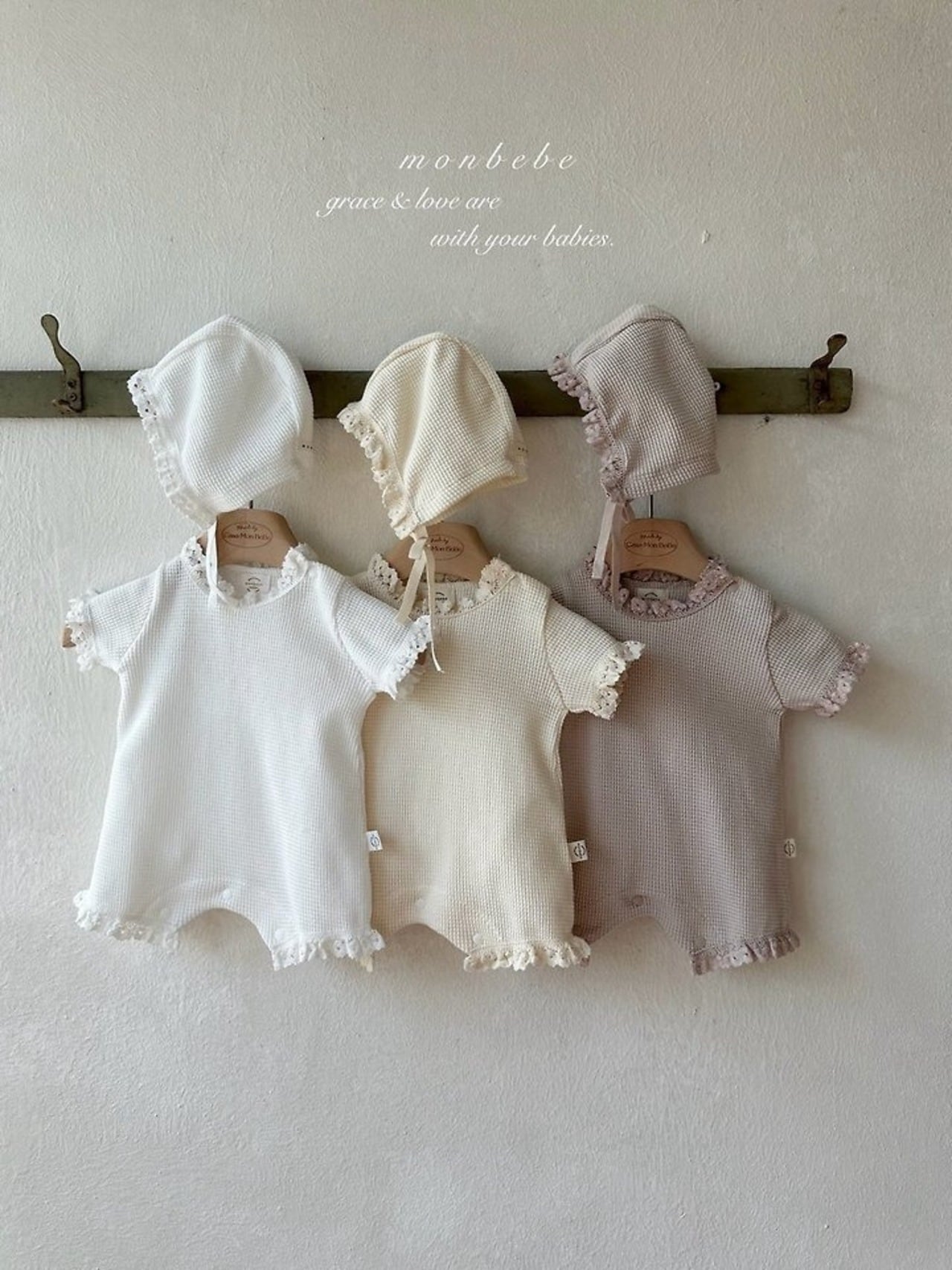 monbebe Summer waffle suit (bonnet set)
