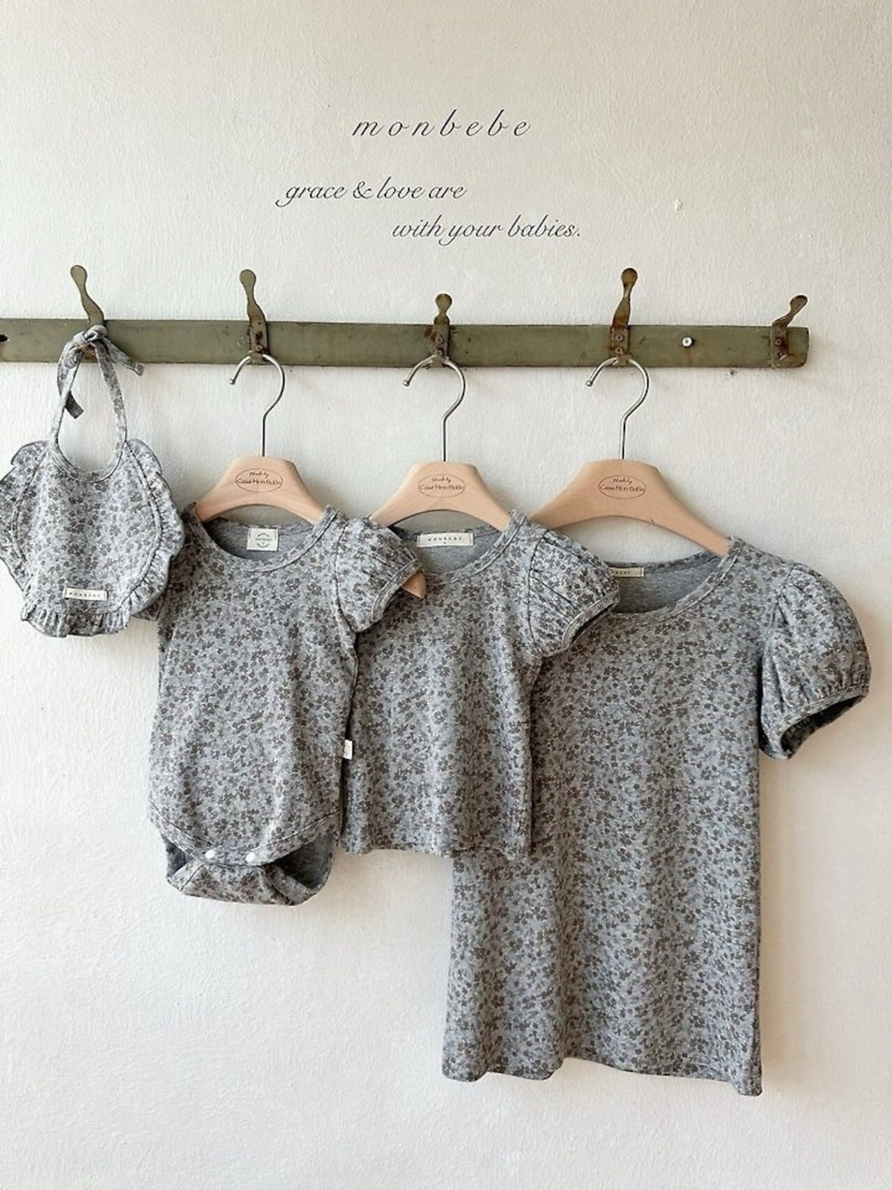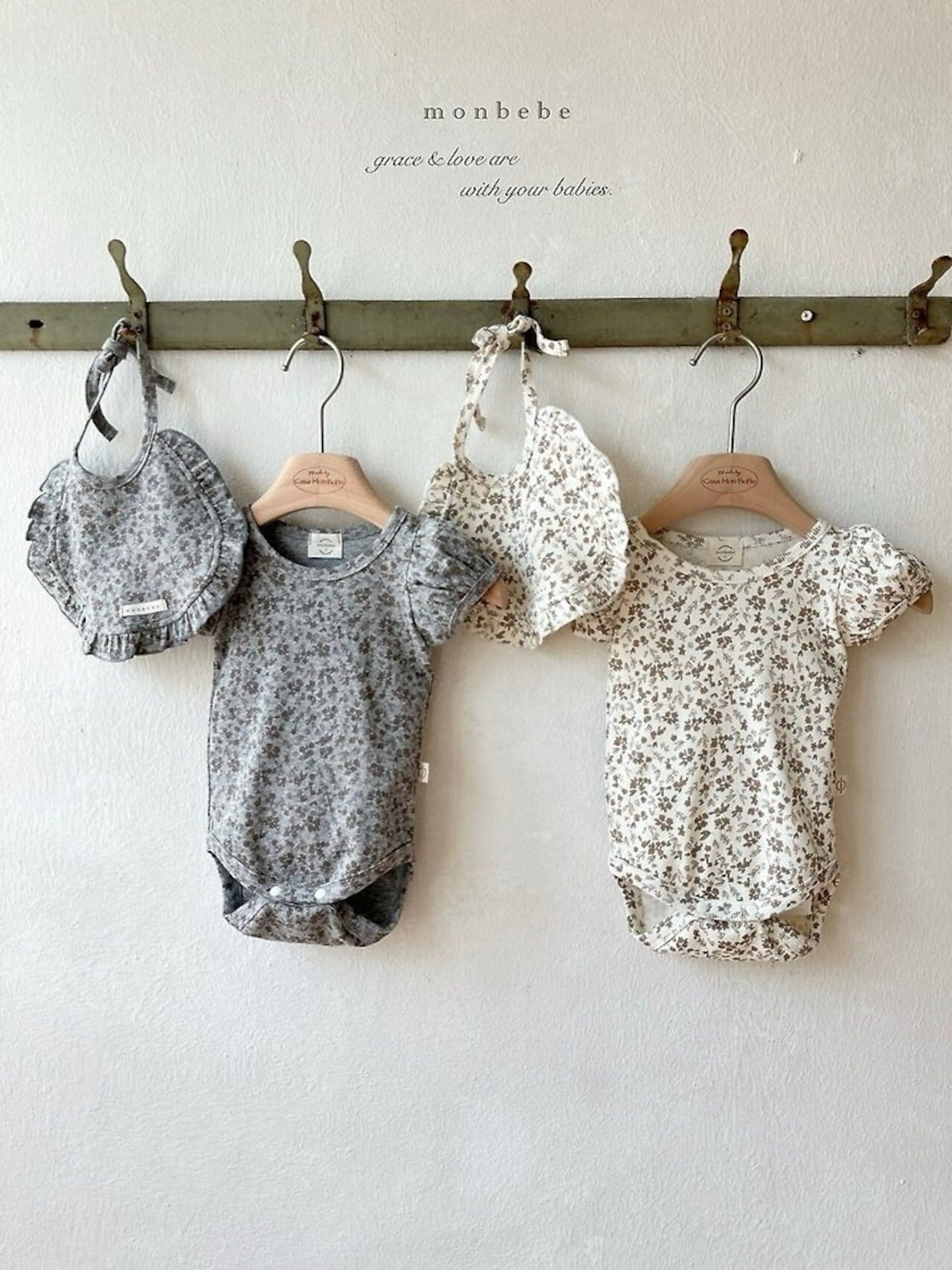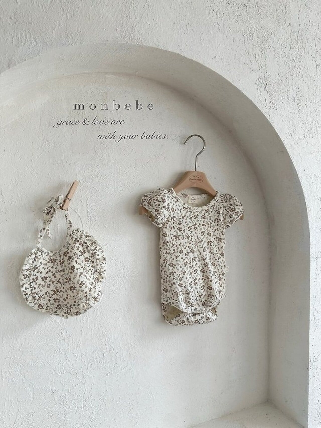 【予約】monbebe Puff flower suit (bib set)