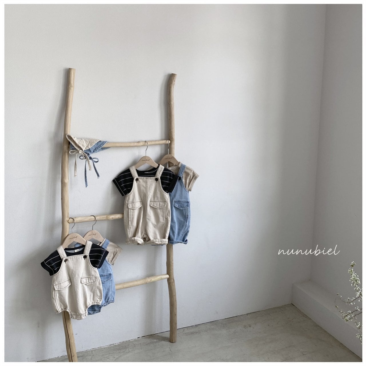 NUNU biel bebe)cut denim romper & bonnet ♡